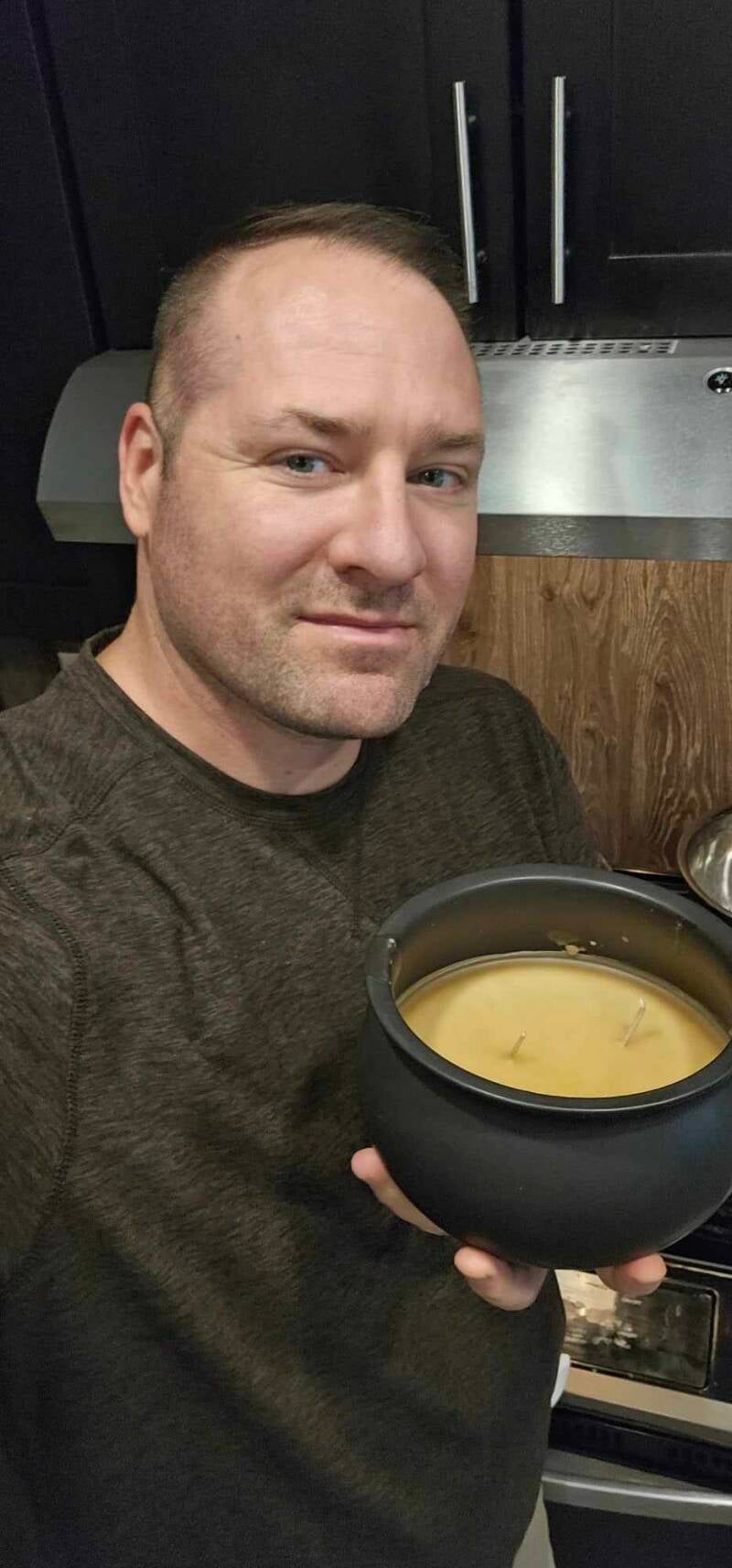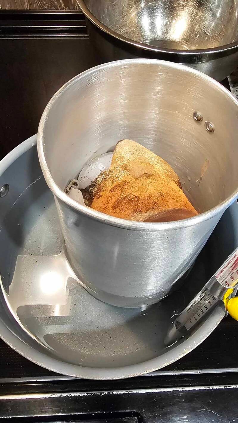The three candles I used as explained in my last post were pretty much spent. I pulled what was left of the wicks and melted them down.